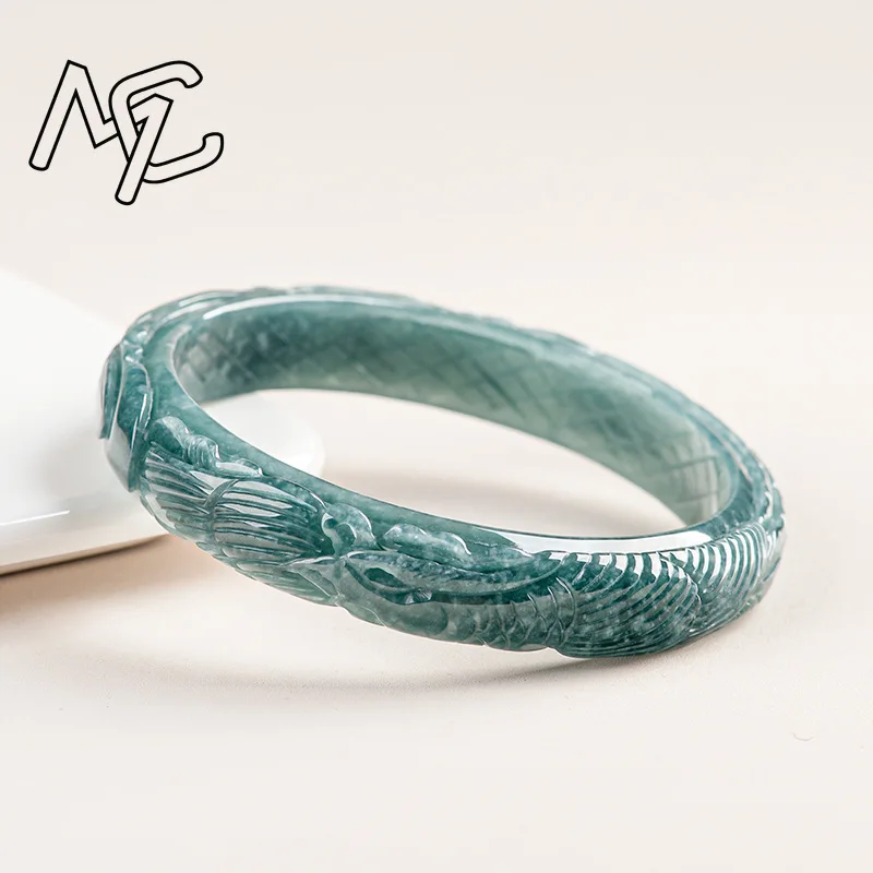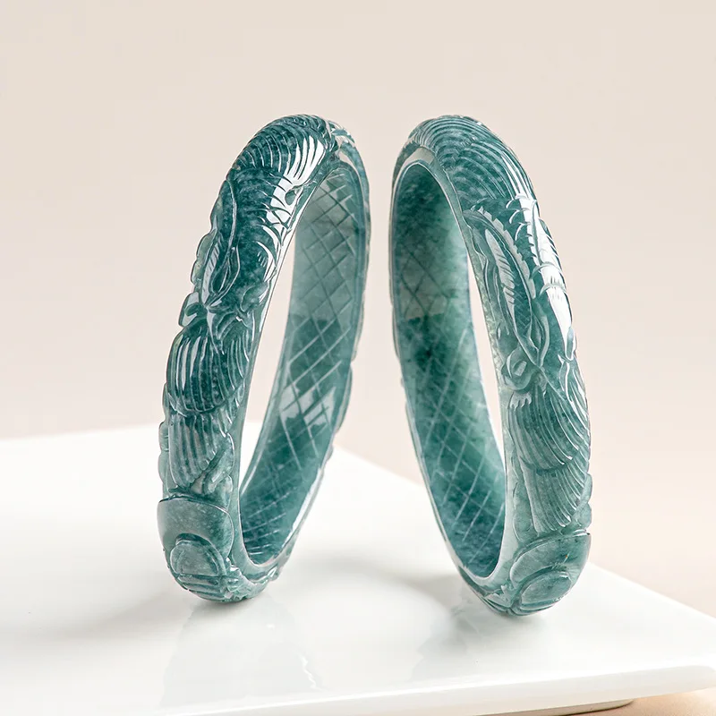 Natural Burmese A Emerald Jade Blue Water Phoenix Bangle Amulets Charm Fashion Jewelry Gifts Certificate Men Women